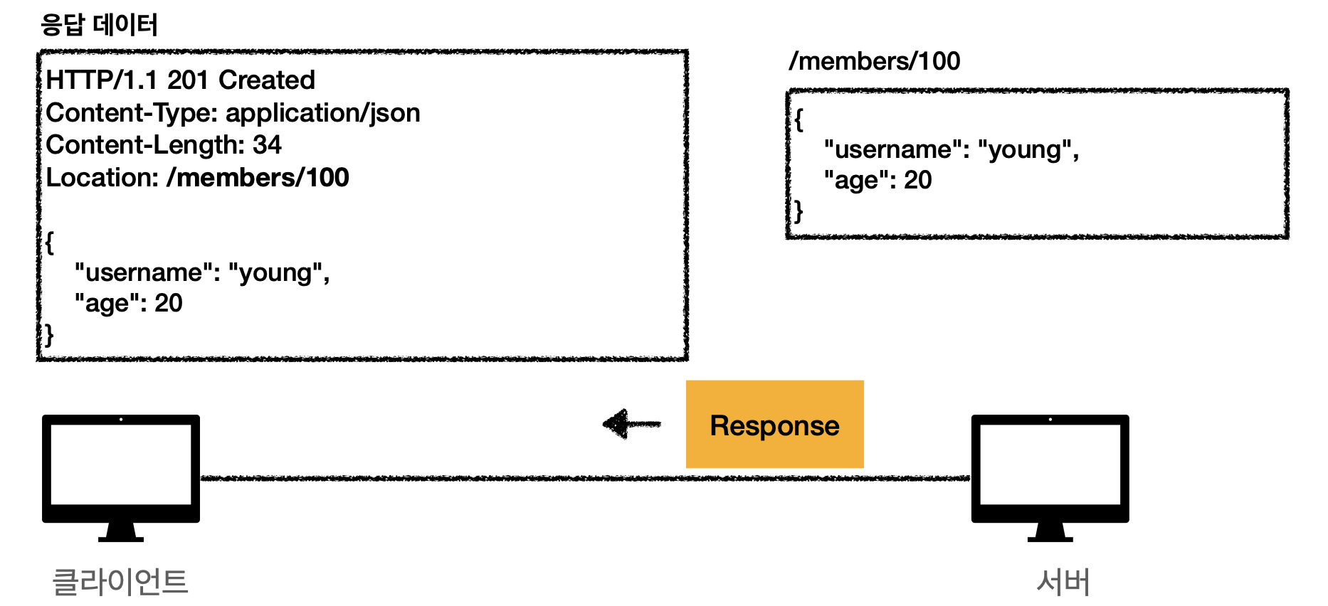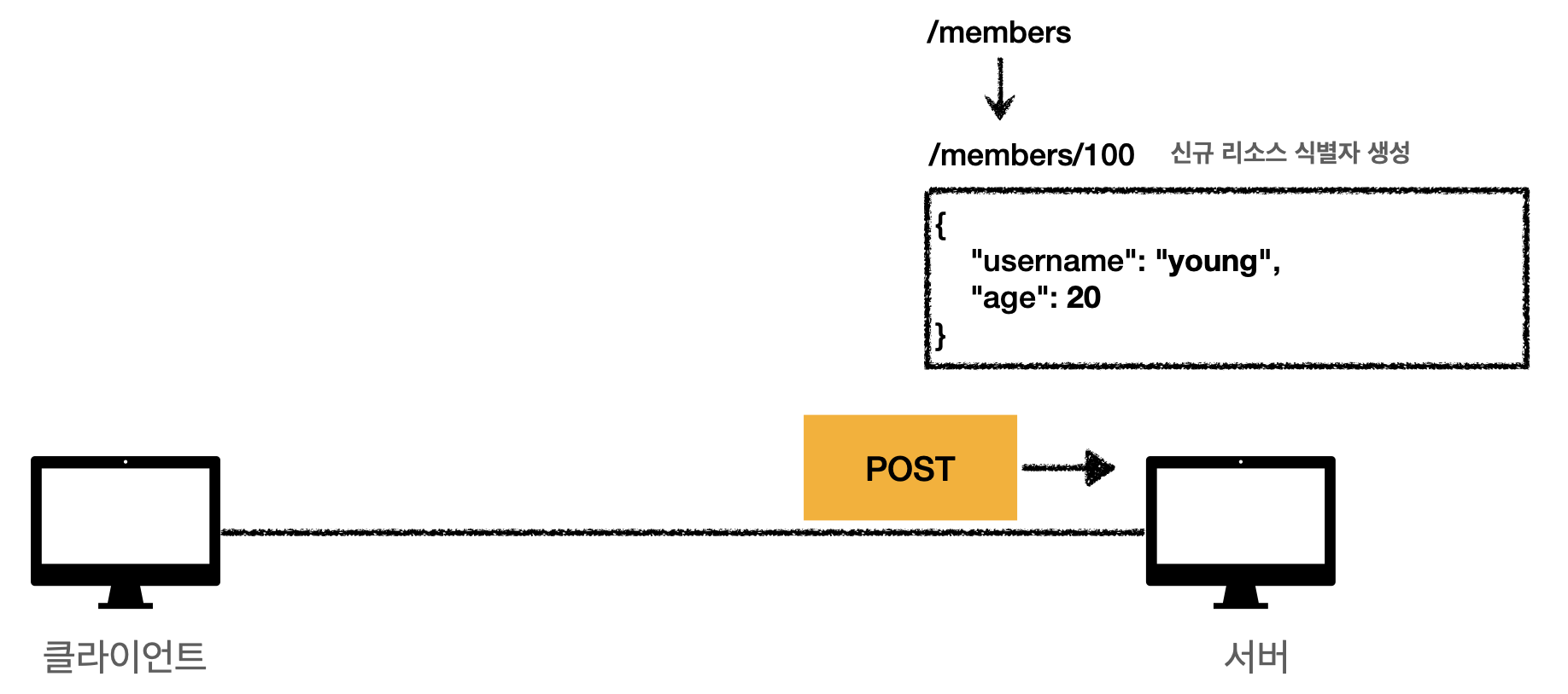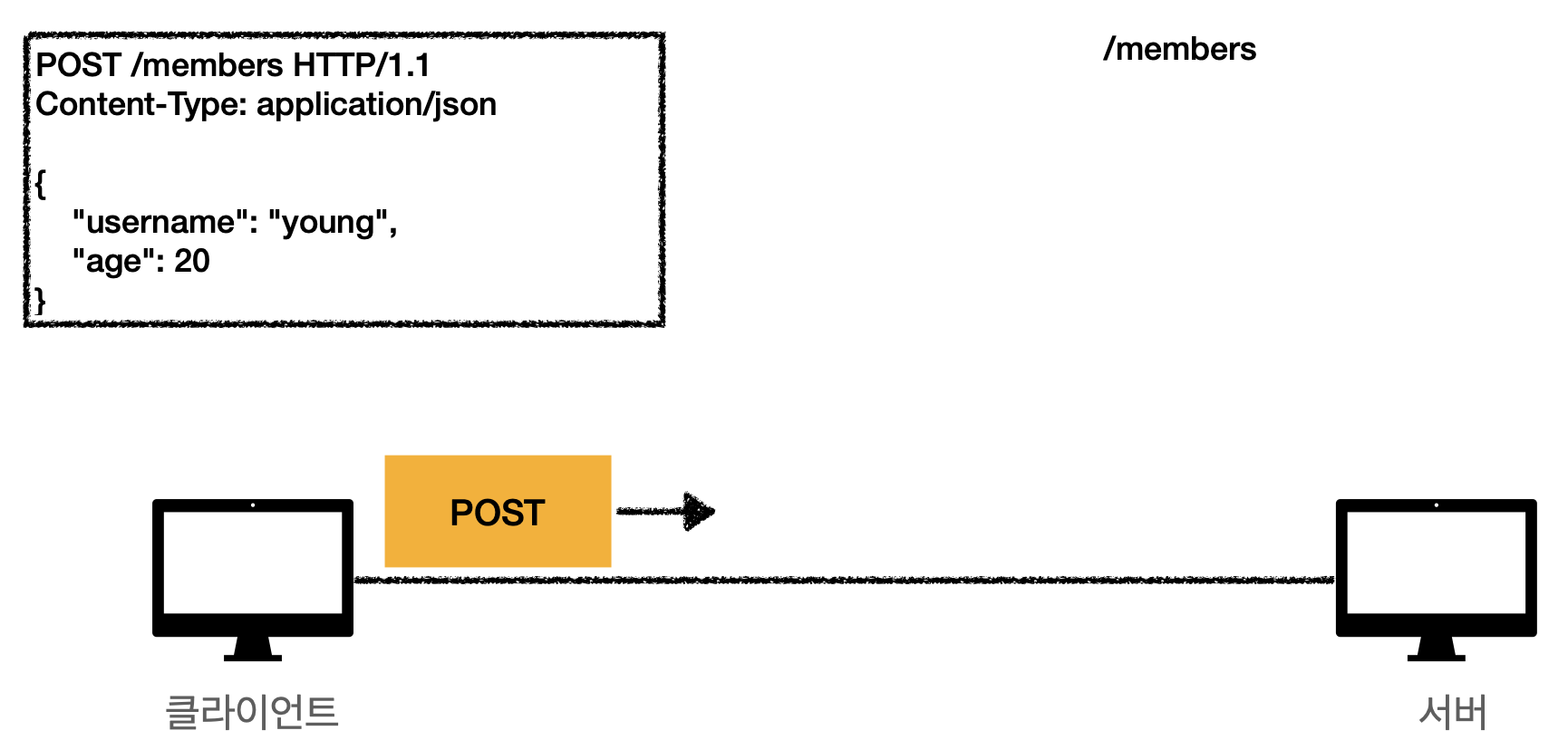 이 요청을 보내기전, 서버가 API 를 만들때 등 /members 에 POST 요청을 보낼시, 데이터를 저장 한다던지