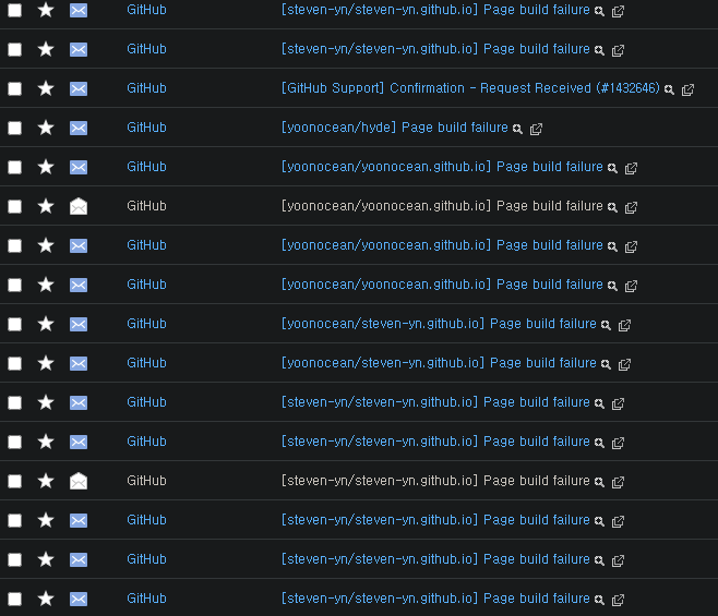 하지만 왠지 나는 이 테마를 적용하려고 하니 Github Pages build failure 만 계속 떴었다... ( 정말 스트레스..... 🤯)