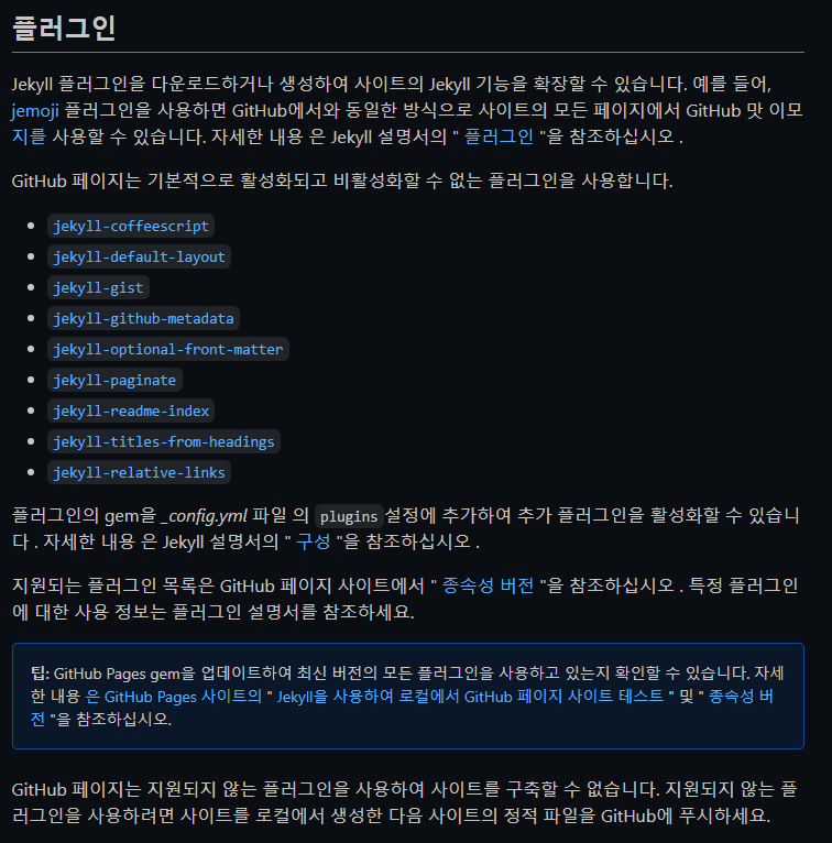 GitHub 페이지는 지원되지 않는 플러그인을 사용하여 사이트를 구축할 수 없습니다. 지원되지 않는 플러그인을 사용하려면 사이트를 로컬에서 생성한 다음 사이트의 정적 파일을 GitHub에 푸시하세요.