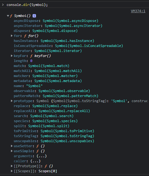 이 빌트인 symbol 값은 Symbol 함수의 프로퍼티에 할당 되어있다.