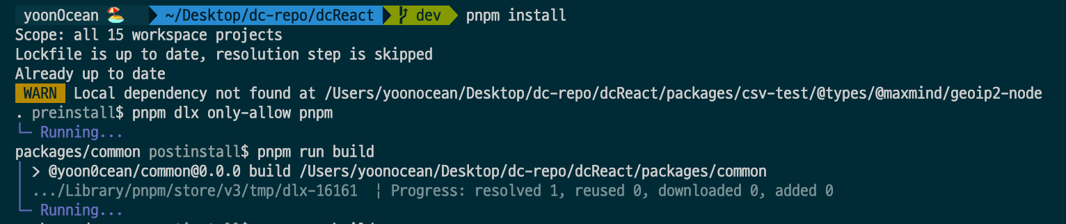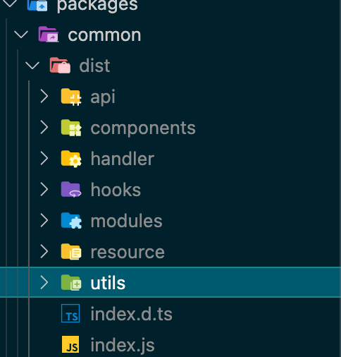 이렇게 하면, 각 프로젝트가 packages.json 에서 @yoon0cean/common 을 모듈로 불러오기 때문에 common 내의 함수등을 불러올수 있게 됩니다.