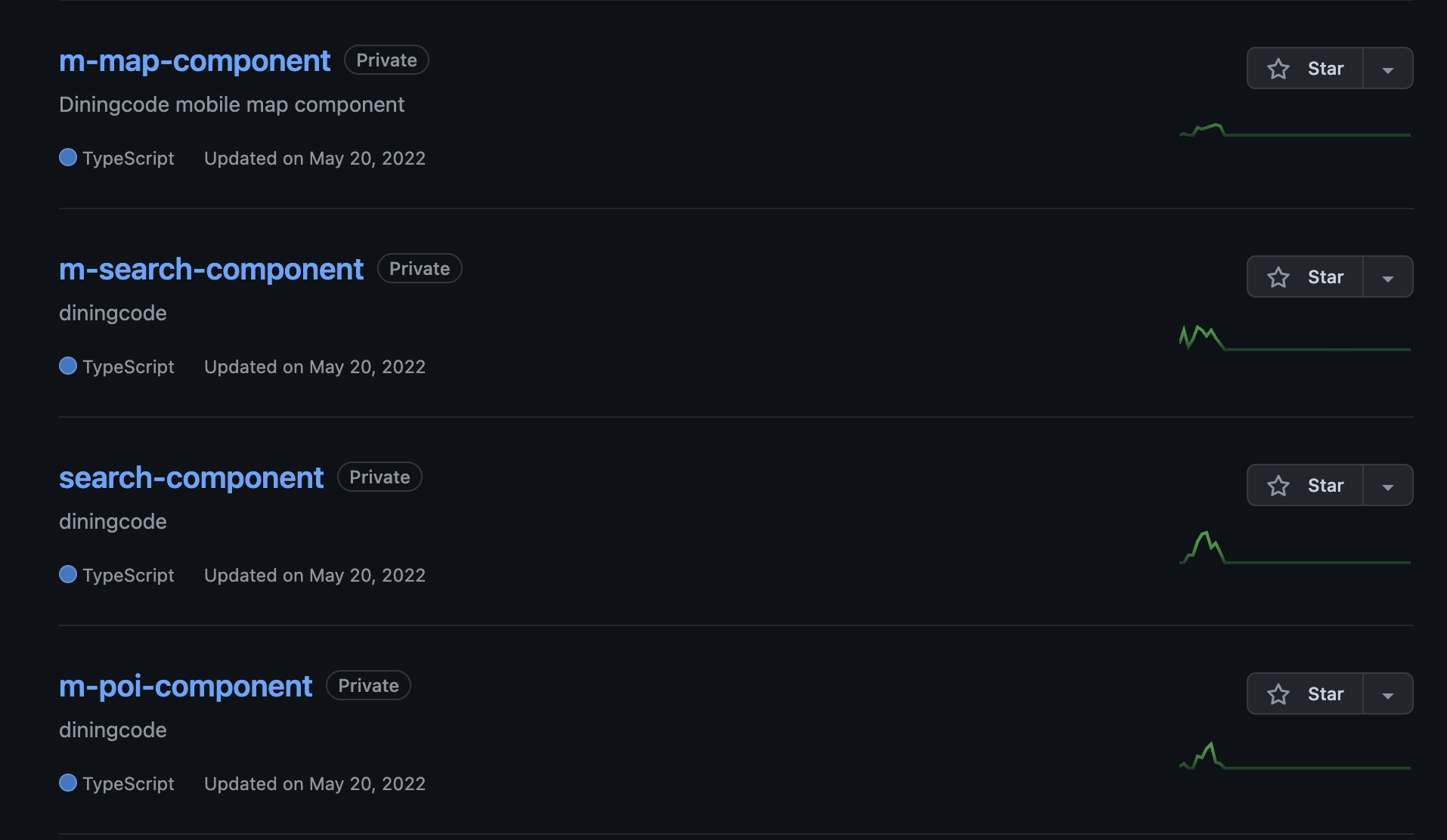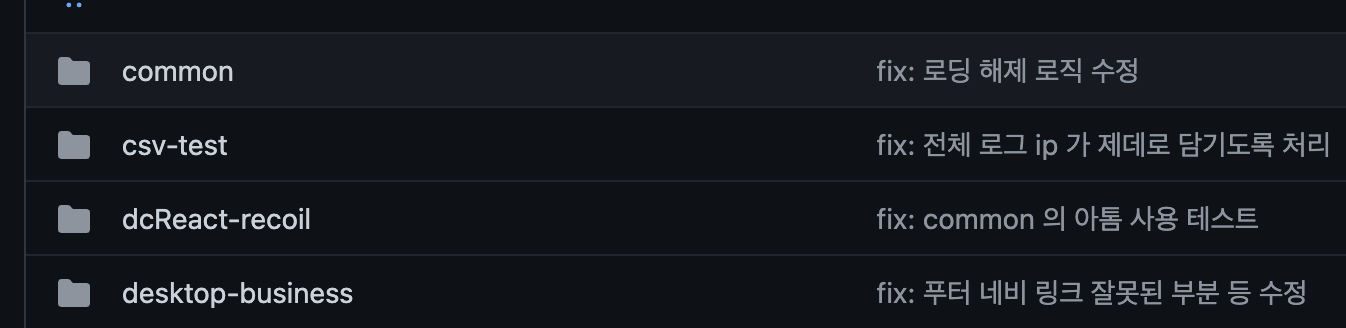 그래서 처음 제가 입사했을 당시에는 모든 프로젝트가 개별의 레포지토리로 나눠져 있었습니다. 물론 공통적으로 사용되는 로직들도 각각 흩어져 있었습니다.