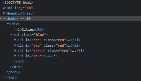 id='one' class='red'>Seoul</li><li